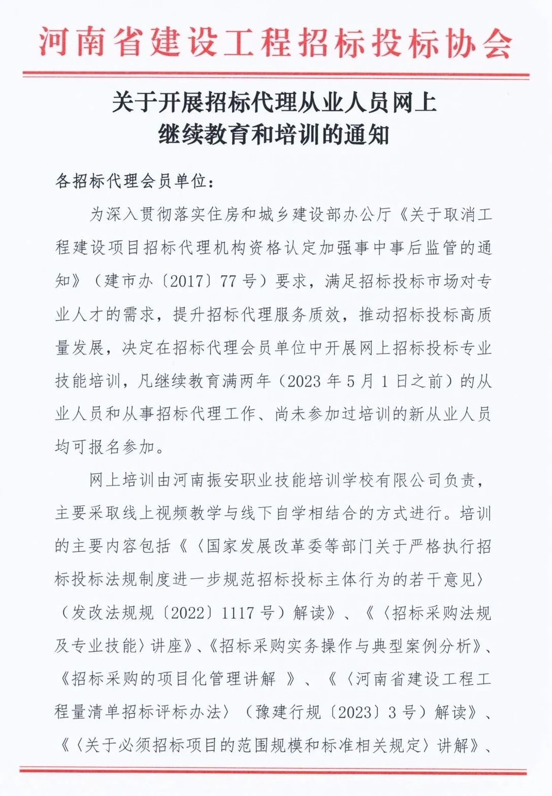关于开展招标代理从业人员网上继续教育和培训的通知2025/03/04 09:06