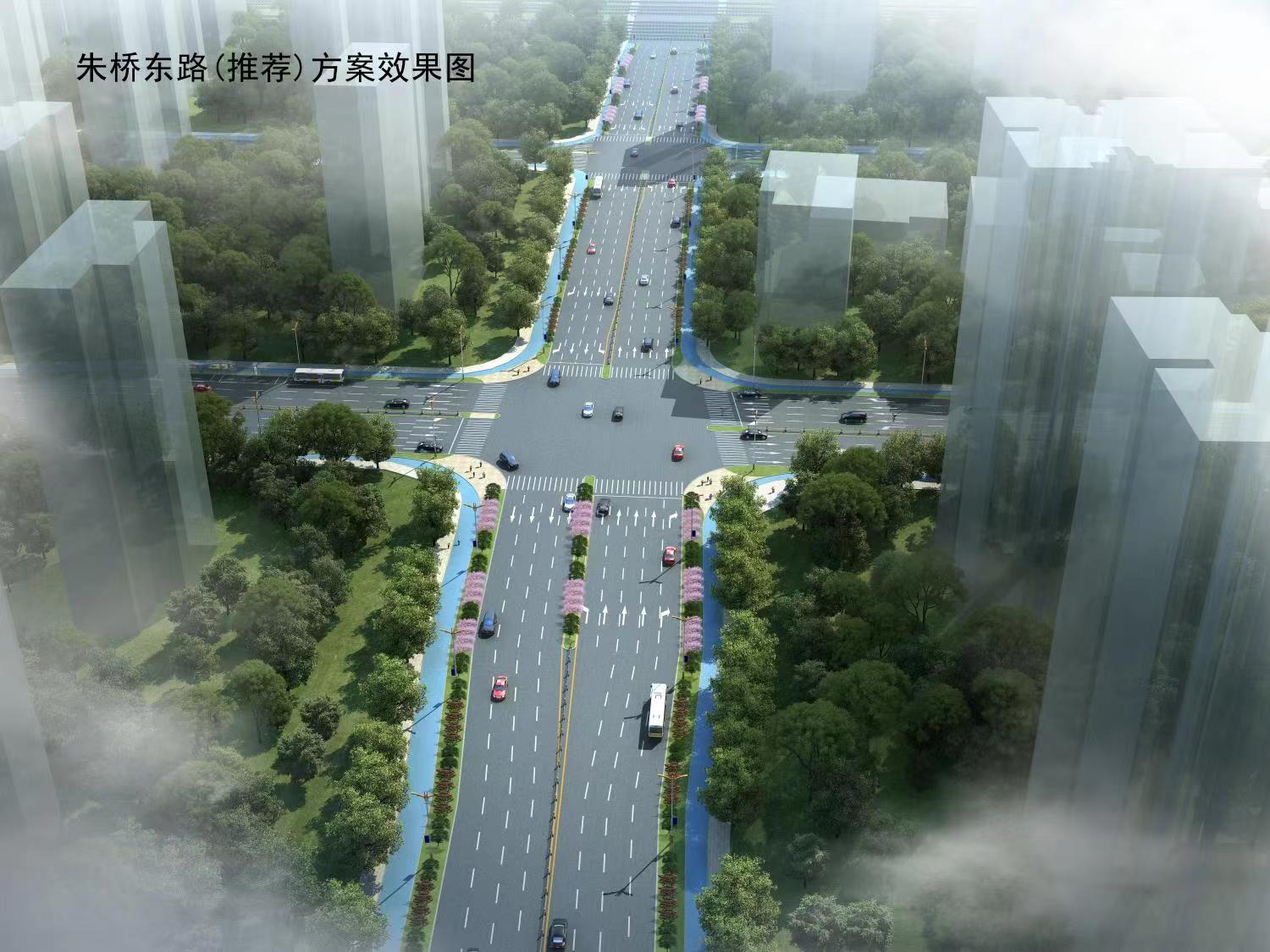 5)朱桥东路西起东站西路,东至站前三路,全长约166m,规划为城市次干道,道路红线宽为44m,双向8车道,设计速度为50km/h。