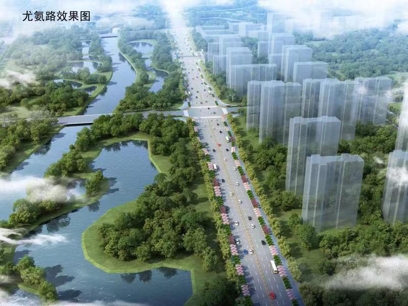 4)尤氨路南起昌南大道,北至昌东三路,全长1300m,规划为城市次干道,道路红线宽为36m,双向6车道,设计速度为50km/h。